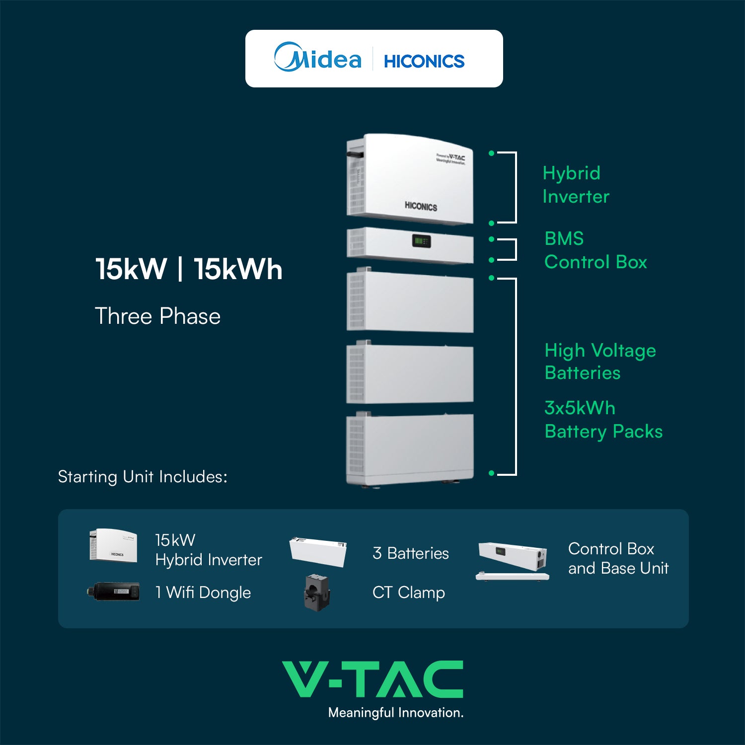 Hiconics Combo Three Phase 15kW with 20kWh Battery including Wifi and CT IP65