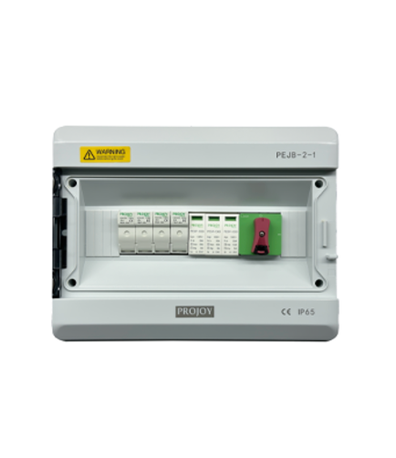 Projoy PEJB series DC Junction Box is a wiring device to ensure the orderly connection and junction of photovoltaic modules in the photovoltaic power generation system.The device can ensure that the photovoltaic system is easy to cut off the circuit during maintenance and inspection, and reduce the scope of power outage when the photovoltaic system fails.